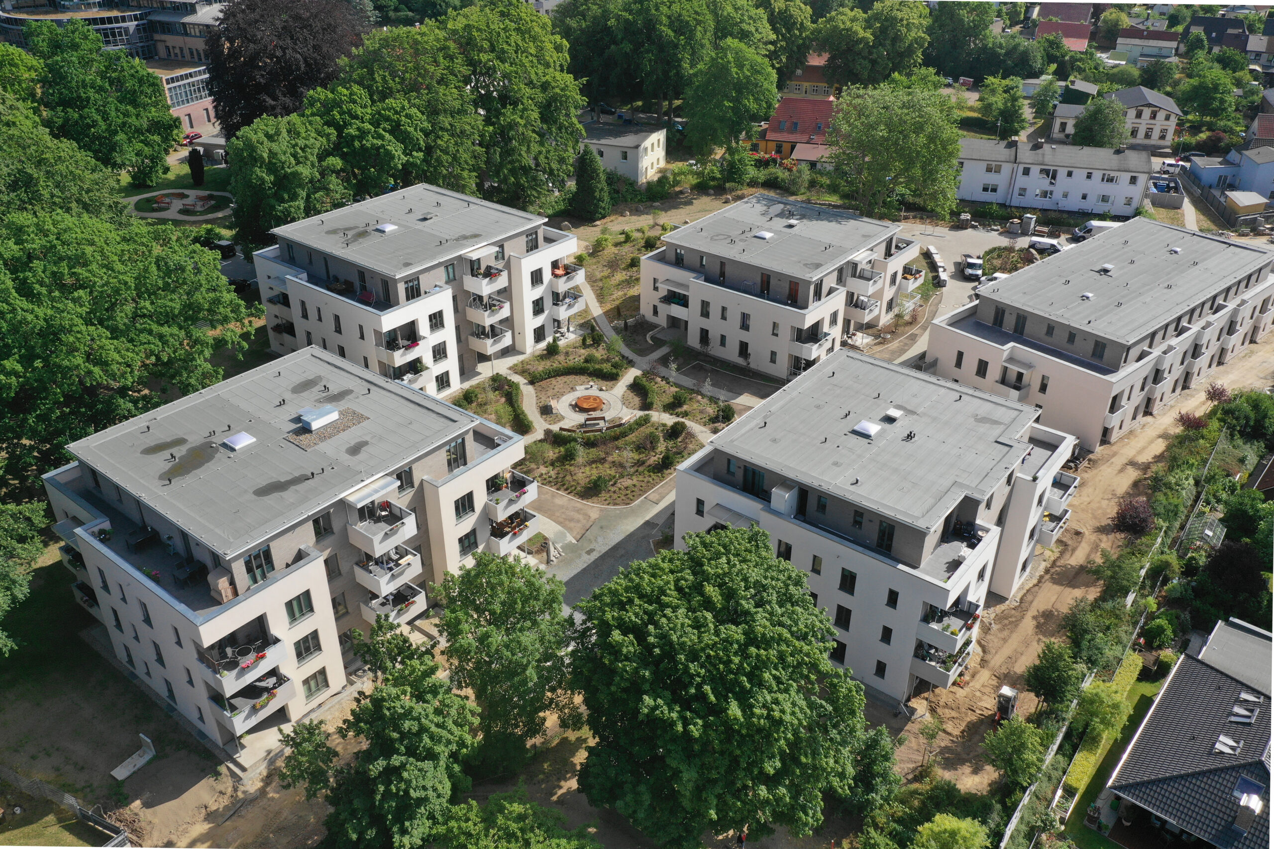 In den 5 Häusern befinden sich insgesamt 79 Wohnungen. Die Häuser sind durch eine gemeinsame Tiefgarage verbunden. In allen Häusern befinden sich Fahrradräume mit Lademöglichkeiten für E-Bikes.